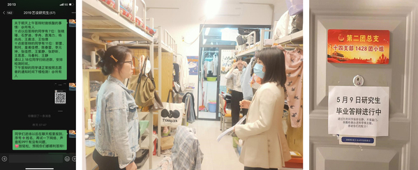 当封控期遇见研究生毕业答辩,辅导员们提前深入宿舍了解学生学习和生活困难,积极关注毕业生的心理状态。为了确保毕业答辩学生核酸检测不漏检,辅导员们提前协调快速通道,方便学生即到即检。在答辩前夜深入宿舍,为答辩寝室粘贴温馨提示卡,提醒过往的学生保持安静,竭力为同学们营造舒适的答辩环境。