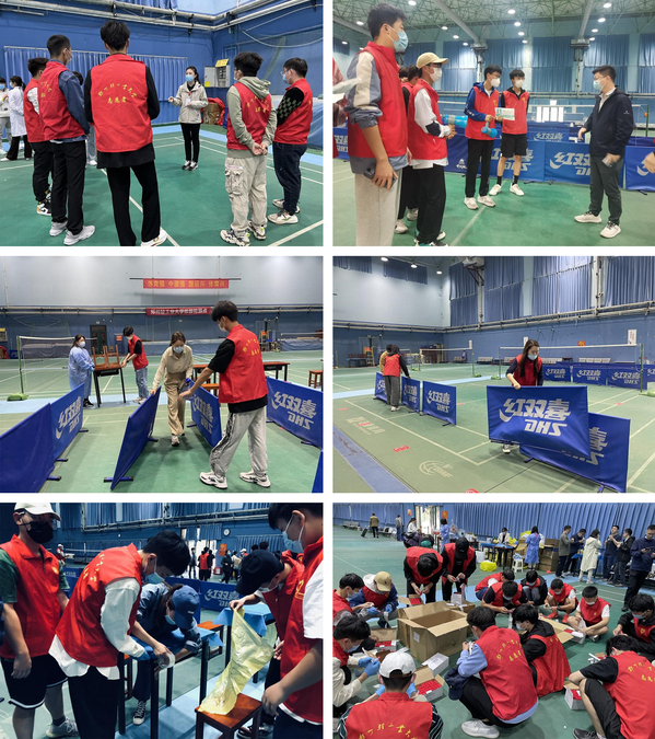 为确保检测工作有序开展,辅导员们提早到达核酸检测现场,带领学生志愿者在采样场内标贴一米间隔和分组标志,做好前期布置工作,规划好体育馆的进出线路,并给核酸检测学生志愿者开培训会。