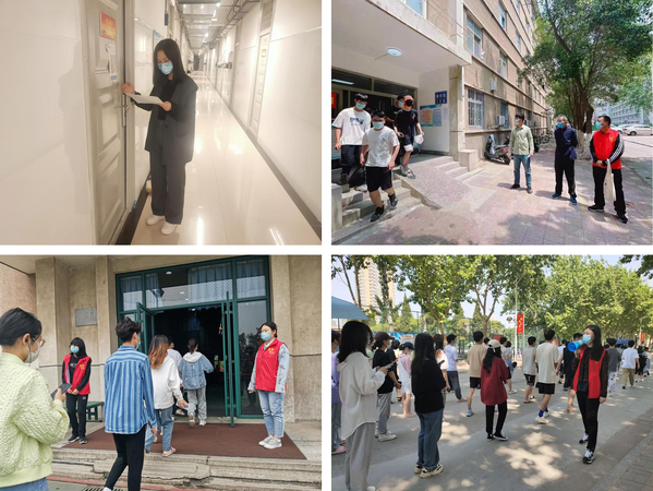 提前规划好各楼宇不同楼层的分时段错峰检测时间、为负责楼层的学生提供叫醒服务、在楼梯口和电梯厅引导学生分流下楼、组织学生在体育馆和图书馆前有序排队……风雨无阻,核酸检测工作在辅导员和学生志愿者的努力下有序进行。辅导员们忙碌的身影,遍布核酸检测现场和宿舍楼宇的每个角落。