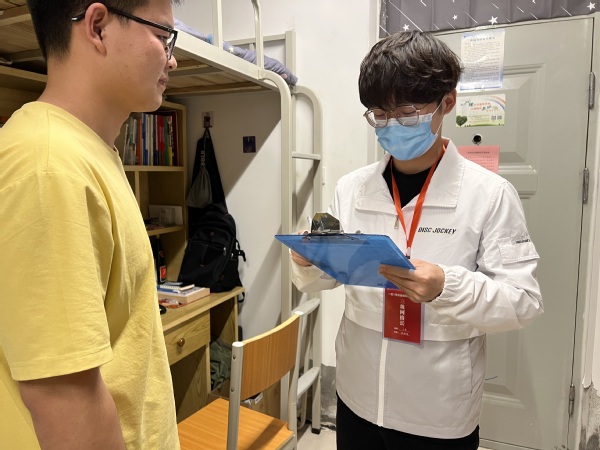 21点40分,学院党委书记刘国豪老师深入寝室与同学们交谈,关心我们的生活情况、情绪状态,及时解决同学们遇到的困难和疑惑。在疫情防控期间,领导和老师无微不至的关怀让我们内心非常踏实。