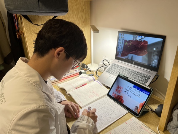 14点30分,经过短暂休息后,我开始线上课堂学习。今天的课是丁静老师的数控技术,为了让线上教学顺利开展,学校信息化中心针对校园网进一步优化,丁老师也提前进行课堂测试,确保线上教学高质量完成。虽然是线上教学,但老师比线下课堂更积极调动同学们的主动性,透过网络让平常比较腼腆的同学也愿意和老师互动,课堂氛围十分融洽。线上课程让每一位同学都能更加清晰看到老师的PPT,对照老师的讲课内容及时做好笔记,大大提升了学习的效率。