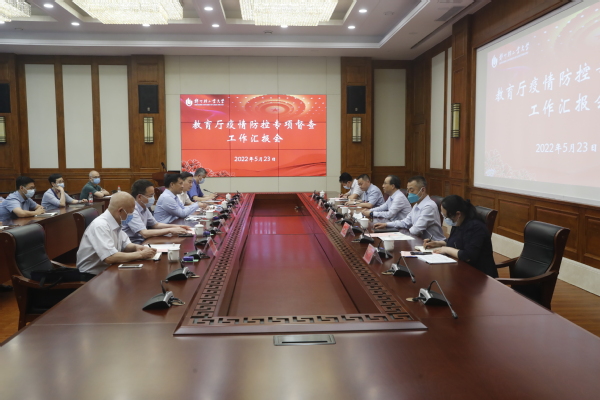 汇报会上,校党委书记、校长黄荣杰从学校基本情况、应急指挥体系建设运行和责任压实情况、校园常态化疫情防控措施落实情况、五一假期以来疫情防控工作主要举措和暑假及秋季学期工作谋划等五个方面介绍了学校疫情防控工作的开展情况。他指出,面对严峻复杂的疫情防控形势,学校深入贯彻落实党中央和省委省政府决策部署,按照省委教育工委、省教育厅要求,切实扛稳主体责任,一是闻令而动、快速部署,二是细化管理、密切防范,三是细致排查、消除隐患,四是网络教学高效开展,五是后勤保障扎实有力,六是人文关怀温暖人心,七是防疫宣传扎实有力。就下一步工作打算,黄荣杰表示,学校将进一步提高站位,加强领导,从严从紧、从细从实做好疫情防控工作,扎实推进毕业生就业工作,确保学生安全文明离校;坚持“两手抓”“两促进”,统筹推进学校疫情防控、防汛救灾和学科科研、教育教学、师资队伍建设等各项事业发展。