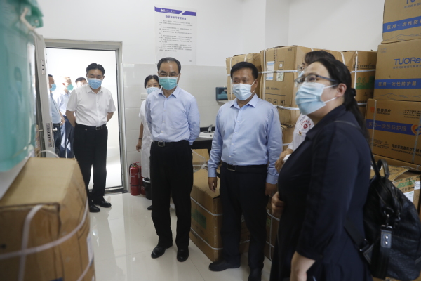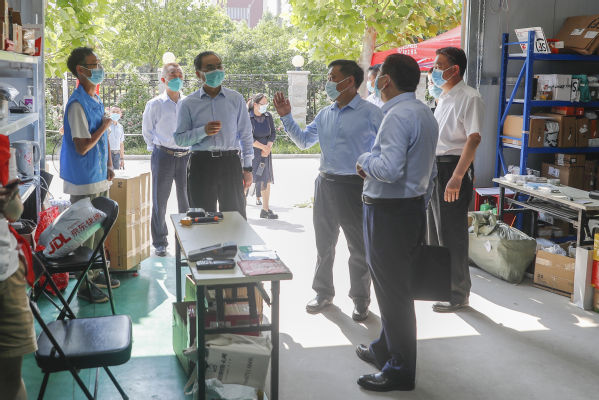尹洪斌一行先后来到学校西门、校医院、心理健康教育中心、快递驿站等地方进行实地查看,详细了解学校疫情防控工作体系、人员管理、物资储备、快递物流管理、环境消杀等各项措施。