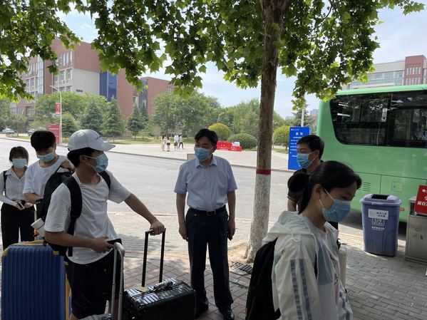 学校领导多次走访、看望返乡学生,指导班车服务、慰问值班老师和学生志愿者。