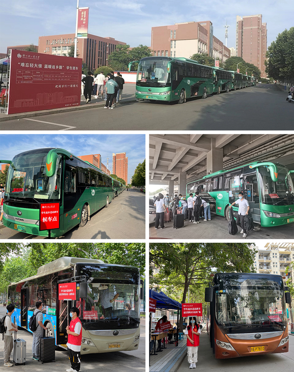 5月28日—31日,学校总计发送定制班车115趟,为2869名返乡学子提供了接驳服务,确保每一个学生安全顺利返乡。