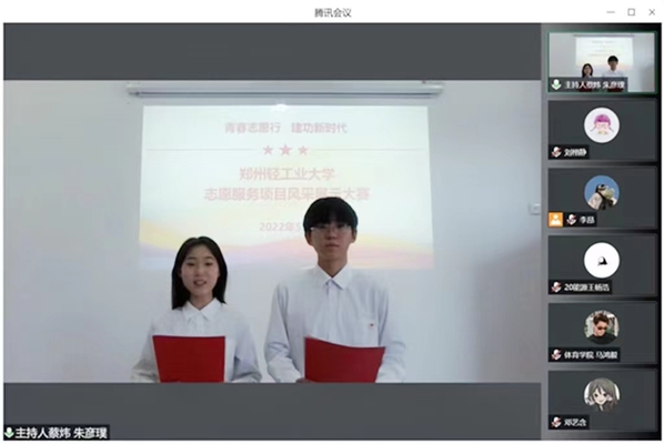青春彰显活力,抗疫育人丰富第二课堂。艺术教育中心、大学生艺术团承办大学生文艺展演大赛,以歌曲、演讲、短剧曲艺、舞蹈等丰富的艺术展现形式,展示了我校美育育人的丰硕成果,营造了健康高雅的校园文化环境。体育学院、校学生会承办“强身健体共战疫情”线上体能比赛,参赛学生按照赛事规则参与线上打卡、规范录制视频,以“云端”竞技的形式彰显了同学们健康向上、共战疫情的精神风貌。国际教育学院、政法学院、青年志愿者协会承办志愿服务项目风采展示大赛,各学院选派的优秀项目团队通过线上项目展示和评委提问环节,从项目背景、活动内容、主要成果及未来规划等方面汇报展示了志愿服务项目风采。(通讯员:翟一晓)