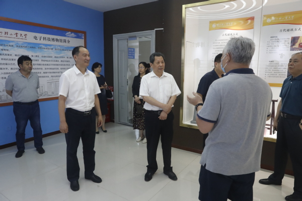在魏世忠、刘新田的陪同下,孔留安校长一行参观了学校信息化管理中心、部分特色实验室及电子科技博物馆,实地了解我校信息化智慧校园及学科、专业建设情况。