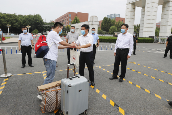 9月9日,校党委书记黄荣杰、副书记张志坚带队看望慰问秋季学期首批返校学生并实地检查疫情防控及服务保障落实情况。校疫情防控工作领导小组办公室及相关职能部门负责同志陪同。