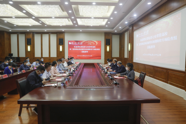 检查组组长许东升简要介绍了省纪委监委开展疫情防控监督检查的意义、目的和要求,对学校疫情防控工作取得的阶段性成效给予充分肯定,对坚决守牢校园疫情防线、强化学校疫情防控监督提出明确要求。他指出,学校要进一步提高政治站位,始终绷紧疫情防控这根弦,压紧压实防控责任,细化完善应急预案,慎始慎终做好疫情防控工作;要进一步查找疫情防控中的薄弱环节和风险漏洞,科学防治,精准施策;要进一步细化学生基本生活保障、学生心理疏导、校园人员出入管理等相关措施,坚决筑牢校园疫情防控防线,确保校园安全稳定和师生身心健康。