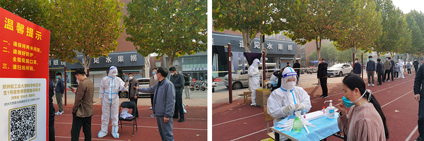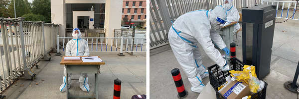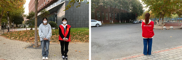 在校园疫情防控志愿服务工作开展过程中,教师志愿者们挺身而出,逆行而上,穿上防护服、戴上防护面罩、换上红马甲时刻活跃在疫情防控的第一战线。来自20个部门,11个学院组成的96人核酸采集队伍,帮助搭建核酸检测点、录入师生员工信息、维护核酸检测现场秩序,尽己所能帮助他人,保证了每一次疫情防控核酸检测志愿服务的正常进行。部分教师志愿者在学校围墙值守,全力守护校园防控“安全网”。