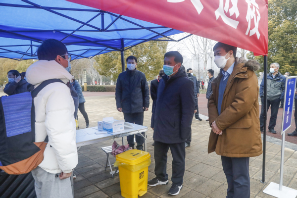校领导先后来到学生宿舍、清苑餐厅、教学楼、校门返校服务台等地点,与返校学生亲切交谈,关切询问学生返校方式、身体状况等情况,叮嘱他们新冠病毒仍存在传播风险,开学后还要注意加强个人防护,当好自己“健康第一责任人”,希望同学们在新的一年,要勤奋学习、刻苦钻研,积极参加各类实践活动,全面提升综合素质。在与工作人员交谈时,校领导详细询问学生返校报到流程、入校测温、行李消杀、入校后健康监测等相关情况,叮嘱大家要认真落实上级和属地关于开学和疫情防控有关要求,按照工作实施方案,细化各项措施,切实做好学生返校工作。