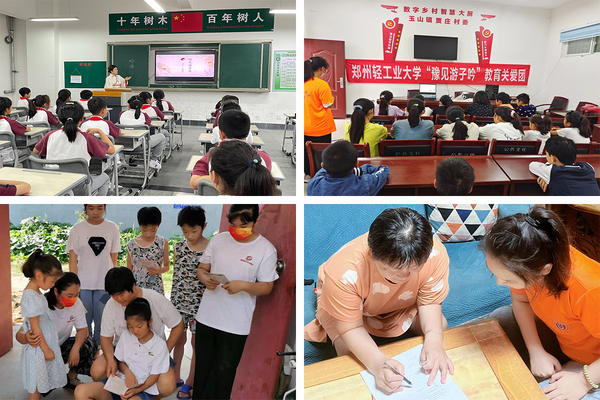 2022年暑期,学校“三下乡”社会实践活动聚焦“喜迎二十大 永远跟党走 奋进新征程”活动主题,项目化组建100支实践团队,活动内容涵盖理论宣讲、党史学习、乡村振兴、成就观察、民族团结、沿黄实践、社会治理等7方面,其中4支实践团队成功入选“三下乡”国家重点团队。“豫见游子吟”教育关爱实践团由学校外国语学院组建,充分结合语言专业学科特色,以地方需求为导向,致力于开展普通话推广和中华经典文化乡村宣传活动。实践活动中团队通过“教理论、诵经典、普规范、深调研”等方式积极构建和营造推普氛围、传播中华优秀传统文化,队员们通过发放问卷、个案访谈、小组座谈等方式开展调研调查,了解实践地区现状和服务对象特点,面向青少年和学前儿童分别开设传统文化经典诵读等系列语言文化“第二课堂”。实践团队着力做好通用语言文字推广、中华优秀传统文化传承、中华民族团结一家亲等活动,助力乡村振兴发展战略、服务基层乡村文化建设,实践事迹得到人民日报、中国青年网、顶端新闻、中国教育电视台公众号等10余家媒体报道。