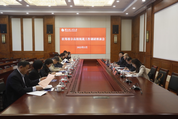3月7日,驻郑部分高校统战工作调研座谈会在我校举行,省委统战部梁险峰副部长,省委统战部党外知识分子工作处、省委教育工委统战处负责同志出席座谈会,郑州大学、河南工业大学、郑州轻工业大学、郑州师范学院、郑州工程技术学院、郑州财经学院6所高校党委副书记、党委统战部部长参加会议。会议由梁险峰主持。