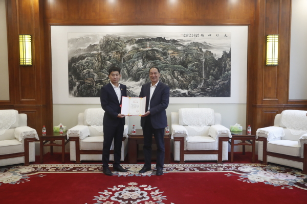 副校长王延峰为蜜雪冰城代表颁发捐赠证书