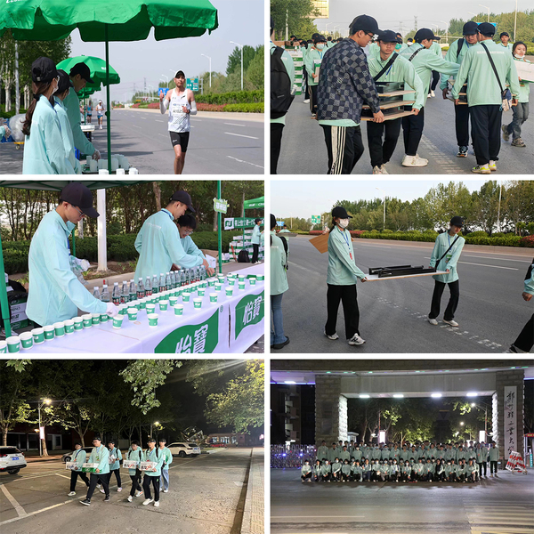 本次赛事中,志愿者团队主要负责20公里至22.5公里处的沿途秩序维护工作以及22.5公里处的饮水站、补给站、降温海绵站的志愿者服务工作。凌晨三点左右,志愿者们在东风校区出发,凌晨五点准时到达工作区域,经过短暂的休整后,开始有条不紊地进行水站、补给站和降温海绵站的准备工作。志愿者们摆放好桌子,将各组水站站点的矿泉水分杯摆放,将能量胶、食物、水果摆好放置在保鲜膜下,将冰块和清水倒入桶中,把海绵浸入冰水泡好竖放于桌面,静待运动员的到来。早上八点半,比赛正式开始,志愿者们认真做好秩序维护,防止无关车辆和行人进入比赛场地;为运动员分发饮用矿泉水、提供能量胶、士力架、面包等,让运动员保持体力继续前行;及时清理赛道上丢弃的纸杯和果皮等赛道垃圾,确保赛道的整洁和运动员的安全。比赛结束后,志愿者再次清理赛场垃圾,整理比赛物资,出色完成了各项志愿服务工作。