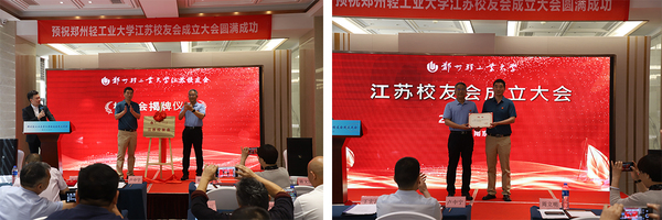 大会开始前,广大校友齐唱母校校歌。校友办负责同志宣读了同意江苏校友会成立的批复,刘凤校友作筹备工作报告。大会通过了《郑州轻工业大学江苏校友会章程》等文件,选举产生了校友会组织架构。周立明和当选会长王宏涛校友共同为江苏校友会揭牌,与会校领导向当选的理事会成员颁发聘书,王宏涛作表态发言。兄弟校友会纷纷发来贺信,北京校友会副会长刘平原、上海校友会副会长毕宏达和艺术团校友会的代表周茵、江苏省河南商会秘书长任富民分别代表兄弟单位致辞表达祝贺。