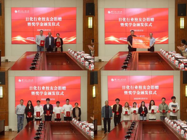 5月27日,郑州轻工业大学日化行业校友会捐赠暨奖学金颁发仪式在科学校区双创中心第一会议室举行。日化行业校友会向我校捐赠30万元,设立郑州轻工业大学“日化行业奖学金”,并捐赠价值4万元仪器设备。校长魏世忠、副校长周立明亲切会见了返校校友,对日化行业校友会一直以来在奖学助学、专业建设和产学研合作等方面对母校的关心支持表示感谢。副校长王延峰、日化行业(华南)校友会会长冯敏、日化行业(华东)校友会会长琚建伟及校友代表出席仪式,学校党委宣传部、校友联络办负责同志及材料与化学工程学院班子成员和师生代表参加仪式。