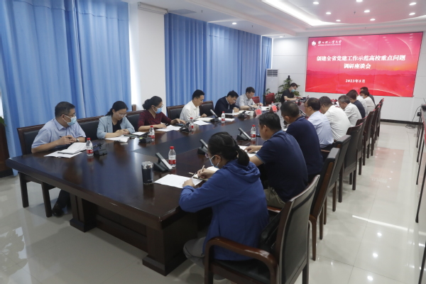 为认真贯彻落实中央、省委关于大兴调查研究的精神,深入推进学习贯彻习近平新时代中国特色社会主义思想主题教育走深走实,5月24日、26日,校党委书记黄荣杰分校区主持召开创建全省党建工作示范高校重点问题调研座谈会,校党委副书记杨新宇、相关职能部门负责人、部分二级单位党组织书记、调研组成员参加座谈。