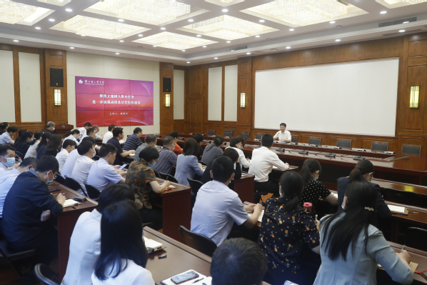 按照学校学习贯彻习近平新时代中国特色社会主义思想主题教育有关安排部署,6月2日上午,校党委副书记杨新宇在科学校区双创中心第一会议室以“聚焦立德树人根本任务,进一步加强高校基层党组织建设”为题作专题党课。各二级单位党组织书记、学院副书记、分管部门同志参加了党课学习。