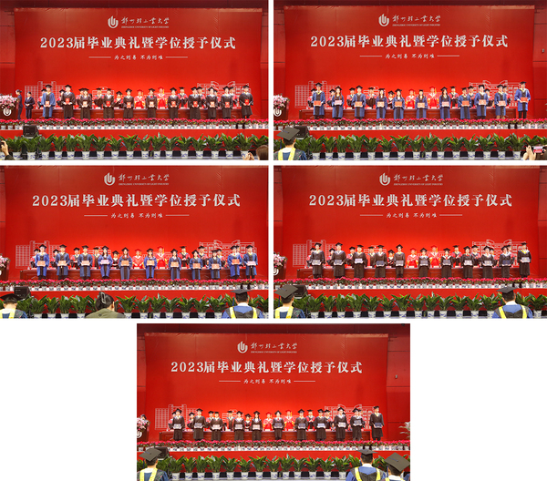 在现场师生热烈的掌声中,校领导先后为“十佳毕业生”和优秀毕业生代表颁奖,为获得学士学位的本科毕业生代表、获得硕士学位的研究生毕业生代表援正流苏并颁发学位证书。