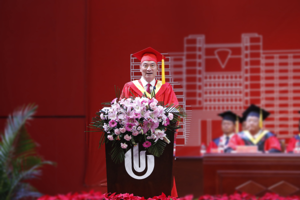 他充分肯定了毕业生们取得的成绩,并代表师长对全体毕业生提出了殷切希望。一是要志存高远,格局宽广。要牢记习近平总书记的殷殷嘱托,树立崇高理想,把个人的命运和国家民族的命运紧密联系在一起,努力成为对国家、对社会有用的人。二是要把学习当做一生的事业和追求。学习是我们每个人的责任,只要学习,就会淘汰野蛮、愚昧和无知。天才之所以卓越非凡,是付出了持续不断的努力。知识就像广阔的海洋,需要我们不断地去开采,去挖掘。要用学习,让自己充满无限可能,让自己变得卓尔不群。三是要踏踏实实做事,本本分分做人。要牢记“为之则易,不为则难”的校训,“朴实、务实、扎实”的校风,养成认真做好手头的每一件事情,努力做到极致的习惯;要脚踏实地地走,心怀天下地看,做到懂敬畏、知善恶、辨美丑,努力成为让自己敬佩、他人尊重的人。四是每一天都要保持奋斗的激情。要相信天下没有白费的努力,成功不必在我,而功力必不唐捐;要学会让自己的每一天都在激情和奋斗中度过,让每一天都充满动力和挑战,这样的人生才无限精彩。