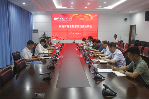 6月12日,河南省科学院党委副书记、执行院长宋克兴,副院长罗春祥、李兵等一行4人来校调研。校党委书记黄荣杰,校长魏世忠,党委副书记孙爱芳、杨新宇,副校长张成及相关单位负责同志参加座谈,座谈会由魏世忠主持。