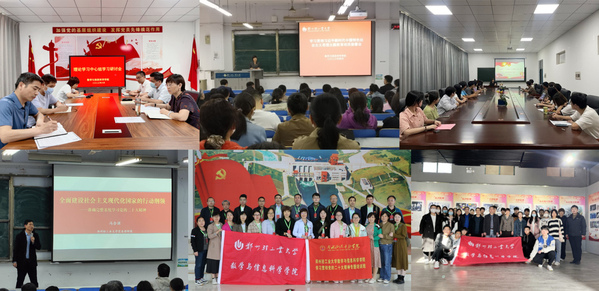 数学与信息科学学院党委将理论学习贯穿于主题教育始终,坚持读原著学原文悟原理,深入学习《习近平新时代中国特色社会主义思想专题摘编》、《习近平著作选读》、《习近平新时代中国特色社会主义思想的世界观和方法论》《习近平关于调查研究论述摘编》等必读书籍,依托党委理论学习中心组学习会、专题读书班、党支部“三会一课”等组织学习,将个人自学与集体学习相结合,截至目前,第一议题学习原文7篇、理论学习中心组学习会学习4次,举办了两期读书班,切实在思想上政治上行动上同以习近平同志为核心的党中央保持高度一致。坚持分层分类以讲促学,坚持领导班子带头上讲台、以身作则、先后讲党课5场;先后邀请冯合国、马寒等专家老师做辅导报告;组织开展党的二十大精神专题学习活动,观看“五一口号”75周年主题展,组织师生观看“永远的丰碑——中国共产党红色精神主题教育展”等多种教育形式,切实在深化内化转化上下功夫见实效。坚持创建平台丰富载体,坚持立德树人根本任务,以党建带团建,组织党员干部赴南阳南水北调干部学院开展学习贯彻党的二十大精神专题培训活动,综合专题教学、现场教学、体验式教学等新颖教学模式深刻感悟中国共产党的初心使命。扎实开展网络思政,建立学院官网、官方微信学习栏目,持续发布重要会议精神、讲话精神。