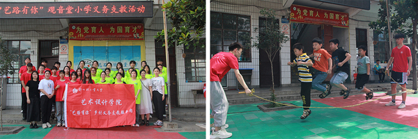 书画音唱趣校园,暑期美育护童心。艺术设计学院“艺路有你”教育关爱志愿服务队来到禹州市花石镇观音堂小学开展活动,志愿者们结合艺术、设计等学科特点,助力乡村文化教育,让艺术与文化相结合,将乡村的美育与心育切实落地,为乡村振兴赋能添彩。开展美工、器乐、合唱、舞蹈等艺术类活动,教孩子们通过画笔和颜料创作出属于自己的艺术作品;普及乐理知识,让孩子们在欢乐的歌声中感受到音乐的魅力;组织趣味运动会活动,通过丰富的游戏与活动寓教于乐,充分调动孩子们的积极性,让孩子们体验到团队合作和竞争的乐趣。实践队员以实际行动让孩子们在接受到关爱的同时,也接受美育教育的滋养,开拓了孩子们的世界观,帮助他们树立了高尚目标。