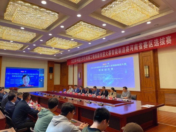 10月8日,2023年中国大学生机械工程创新创意大赛智能制造赛河南省赛区选拔赛线在我校科学校区成功举办。本次智能制造赛河南省赛区选拔赛由中国机械工程学会指导,河南省高等教育学会主办,郑州轻工业大学承办。大赛采用线上线下相结合方式,河南工业大学、华北水利水电大学等省内26所高校的95支队伍、280余名学生参赛。副校长周立明、国家竞赛执委会主任委员陈云、河南省高等教育学会副秘书长田东、河南省机械工程学会秘书长李剑、上海犀浦智能系统有限公司技术总监聂平、河南聚合科技有限公司总经理王路宽出席开幕式,工程训练中心(创新创业学院)领导班子成员、全体裁判员等参加开幕式。
