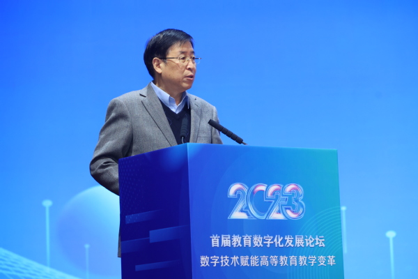 李家俊代表中国高等教育学会致辞。他指出,高等教育领域数字技术运用越来越广泛,不断推进高等教育转型升级。围绕新时代高等教育数字化转型发展,他强调,一要以数字化赋能新时代人才培养,通过推动数字技术与传统教育融合发展,真正把为党育人、为国育才落到实处;二要以数字化赋能高质量教育教学,全面提高人才培养质量;三要以数字化赋能高效率内部治理,为实现高效治理能力和治理体系现代化提供强大动力。