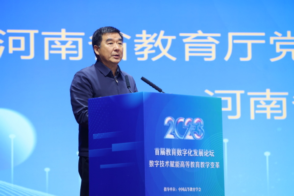 刁玉华代表河南省高等教育学会致辞。他指出,本次论坛的目标是探索全面和彻底的数字化转型,构建数据驱动、人技结合、跨界开放的新型教育生态,打造更加适切、完备、开放、公平、卓越和可持续的高等教育新体系。他强调,各高校要革新数字化转型的核心理念,以数字变革驱动教育创新发展;要找准数字化转型的有效路径,形成教育教学综合服务体系;要加速数字化转型的环境构建,统筹布局、协调联动,为教育数字化转型锚定目标、绘就蓝图。