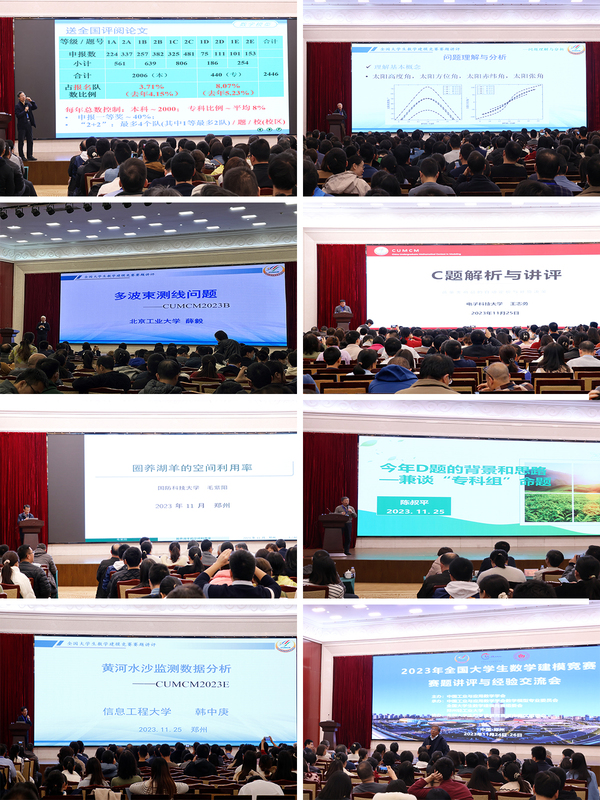 11月24-26日,由我校承办的“2023年全国大学生数学建模竞赛赛题讲评与经验交流会”在郑州市融通紫荆山宾馆隆重举行。会议由中国工业与应用数学学会主办,中国工业与应用数学学会数学模型专业委员会、全国大学生数学建模竞赛组委会和郑州轻工业大学共同承办,全国大学生数学建模竞赛河南赛区组委会协办,来自清华大学、浙江大学、国防科技大学、电子科技大学、北京工业大学、华东理工大学等全国400多所高校的800余名数学建模一线教师参加了本次大会。