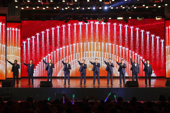 大合唱《领航》由出席本次新年联欢会的全体校领导与经济与管理学院合唱队、教职工合唱团、离退休合唱团共同献唱。温暖深情、气势恢宏的歌声,彰显了江山就是人民、人民就是江山的宏大主题。唱出了全体轻大人爱党爱国的赤子情怀和共同心声,抒发全体轻大人永远跟党走、奋进新征程的豪情壮志,把联欢会的氛围推向了高潮。
