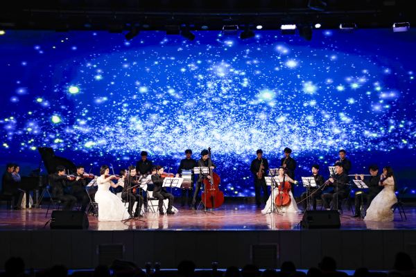 玉兔辞旧春华启,龙腾新春气象新。联欢会在欢快的舞蹈《龙腾竞“轻”春》中拉开序幕;歌曲《花开新时代》描绘了在飞速发展的新时代里,广大师生昂首阔步、奋斗前行的画卷;管弦乐合奏《第二圆舞曲》如清波荡漾,如圆舞翩翩,展现了音乐的多样性和魅力,让大家在享受美妙旋律的同时,感受到音乐带来的情感共鸣;男声小合唱《我奋斗 我幸福》节奏明快,铿锵有力,表达出通过奋斗带来的获得感和幸福感;舞蹈《清风徐来》通过优美的舞蹈和深情的音乐,展现出对美好生活的向往和追求;诗朗诵《风帆再起展新程》发自肺腑的行行诗句,包含着轻大人爱校荣校的共同心声,诉说了轻大人再谱新篇的坚定信心;功夫秀《礼之用 和为贵》舞蹈结合健身气功的动作,诠释出人与人之间和谐共处的和谐之美;歌曲联唱《最美的星光》旋律优美感人、演唱走心入情,鼓舞着奋斗路上的追梦人;舞蹈串烧《新青年》激昂的音乐搭配极具表现力的舞蹈,在跳跃的音符里展现奋进的激情;汉服秀《汉韵中华》把古典、含蓄、轻盈、飘逸之美体现得淋漓尽致;互动环节《春夜喜雨》是来自泰国、伊朗、印度尼西亚等一带一路沿线国家的留学生带来的表演,他们以歌曲、对话等形式在这辞旧迎新的美好时刻为大家送来美好的祝福;民乐合奏《象王行》浩瀚磅礴,气象万千,几种乐器相互配合,奏出了中华五千年文明的波澜壮阔;舞蹈《沁莲》以敦煌文化中的舞蹈壁画形象为原始素材,展现出中华民族历史悠久、风格多元的灿烂舞蹈文化;独唱《春风十万里》通过优美的旋律和深情的歌声,歌颂伟大的祖国朝气蓬勃、欣欣向荣的大好局面。