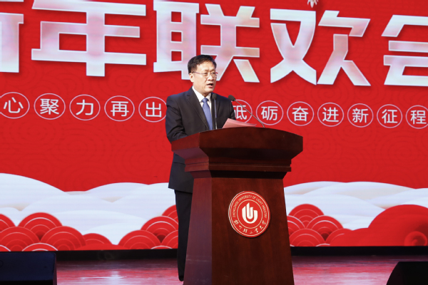 党委书记黄荣杰发表新年致辞。他代表学校党委、行政,向杏坛耕耘的全体教职工、向奋发向上的轻大学子、向桃李满天的离退休老同志,致以诚挚的问候和新年的祝福!他深情回顾了2023年全校上下勠力同心、攻坚克难,紧紧围绕建设高水平轻工业大学这一目标,以高质量党建引领事业高质量发展的奋斗历程。2023年,全体轻大人在繁忙的学习、工作、生活中收获了成长和感动;培养了友谊和爱校、兴校、荣校的轻大情怀。即将到来的2024年,是中华人民共和国成立75周年,是实现学校“十四五”规划目标任务的关键一年,他号召全校师生在新的一年继续秉承“为之则易,不为则难”的校训,以改革创新的精神、攻坚克难的勇气、抓铁有痕的劲头,奋力推动学校各项事业高质量发展,努力为教育强国建设,为中国式现代化河南实践做出新的更大的贡献。