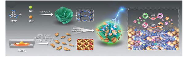 近日,材料与化学工程学院杜淼教授和张治红教授团队针对电催化产氨和产氢存在的催化剂活性低、稳定性差和转化机理不清晰的问题,在材料和能源领域Top期刊《Advanced Science》和《Small》上发表高水平论文。异质结工程在半导体器件领域具有广泛的应用,通过利用不同材料的界面结构可实现材料的微观调控和优化,充分发挥不同材料的特性。受此启发,杜淼教授团队利用异质结工程,通过利用半导体金属框架材料(MOF)和硼纳米片形成p-n型异质结,并以等离子体处理方式在异质结材料中引入缺陷,从而形成高效电催化氮气还原的催化剂,实现的高氨气产率(28.26 ± 2.27 µg h1 mgcat.1)和法拉第效率52.92 ± 1.83%处于国际领先水平。该项工作发表在Adv. Sci. 2023, 10, 2205786(影响因子15.1,中科院一区,TOP期刊)。论文链接:https://onlinelibrary.wiley.com/doi/10.1002/advs.202205786