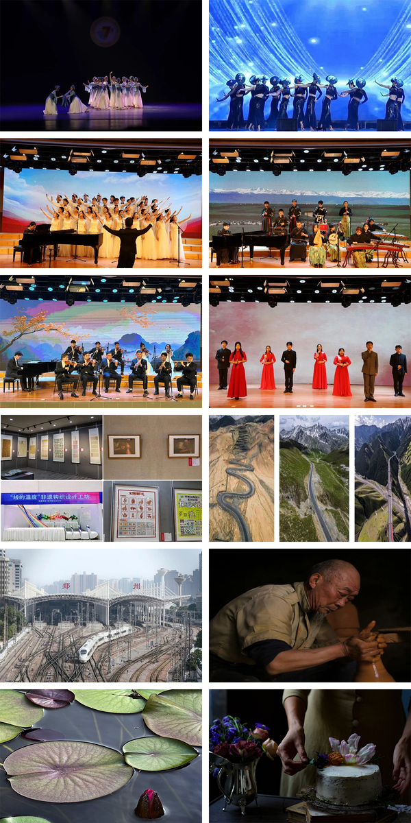 本届展演活动以“厚植家国情怀,涵养进取品格”为主题,坚持立德树人、面向全体、弘扬中国精神的原则。我校积极参与、充分准备,参与展演活动的项目和内容紧紧围绕主题,充分展现出当代大学生与时代同向,与祖国同行,胸怀家国,奋力筑梦的价值追求和有理想、敢担当、能吃苦、肯奋斗的精神状态。其中艺术表演类节目共有10个节目获得奖项,一等奖1项、二等奖8项,三等奖1项。舞蹈作品《昆韵》荣获一等奖,《陶醉了》荣获二等奖;器乐作品《敕勒歌》《八月桂花遍地开》、声乐作品《汉阳门花园》《给我一双翅膀》《您花开的样子》、戏剧作品《非遗记》朗诵作品《天上的河,心中的河》荣获二等奖、戏剧作品《那一河乡愁》荣获三等奖。艺术设计作品共有14个作品获得奖项,一等奖6项、二等奖1项、三等奖7项。摄影作品《小荷才露尖尖角》《陶艺传承》《郑州动脉》《不同寻常的路》与设计作品《文物“邮”礼》《忆》荣获一等奖;摄影作品《生夏如花》荣获二等奖;书法作品《将进酒》《中国少年说》绘画作品《褪色胶片》、设计作品《青春&梦想》、摄影作品《落日余晖》、微电影《1988》《光盘行动》获得三等奖。此外,大学生艺术实践工作坊《“线的温度”非遗钩织设计工坊》获得一等奖;高校美育改革创新优秀案例《“四环互动”进阶式美育策略的构建与探索》获得一等奖。