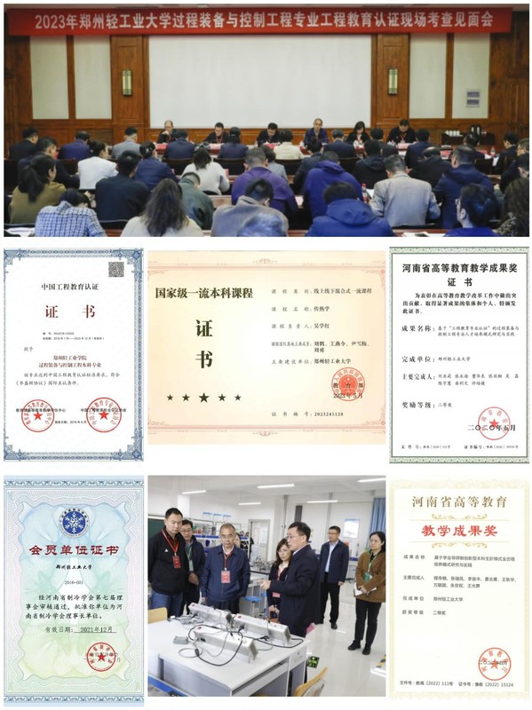 专业内涵建设持续加强。以工程教育专业认证为抓手,深化教育教学改革,教育教学质量显著提高。学院两个专业均为国家一流专业建设点,在省2023年普通高等学校本科专业评价中,评价等级全部为B。2023年,过程装备与控制工程专业接受并顺利完成教育部工程教育专业认证第二轮现场考查工作。获国家一流本科课程1门,省一流课程5门,高等教育教学成果二等奖2项,省级教改立项3项,重点立项2项,省虚拟仿真实验项目2项,省级优秀基层教学组织2个。