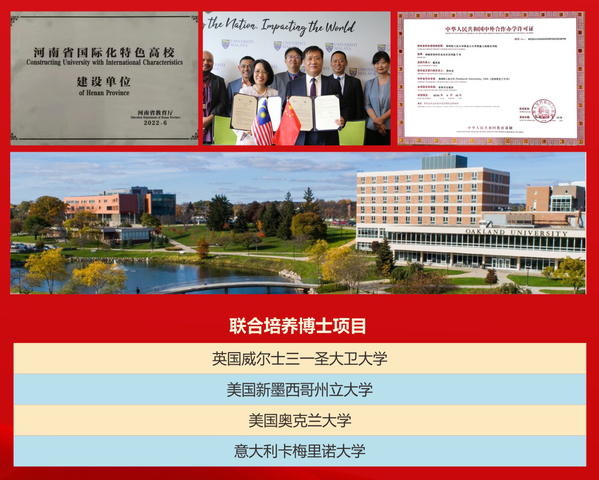 坚持“引进来”与“走出去”相结合,积极构建对外开放“五通”体系,获批郑州轻工业大学奥克兰大学智能工程联合学院,这是我省“十三五”以来首个中美合作办学机构。新增杰出外籍专家工作室2个、中原英才计划海外引才计划2项、中外合作办学本科教育项目2个、联合培养博士项目4个,获批河南省国际化特色高校建设单位。