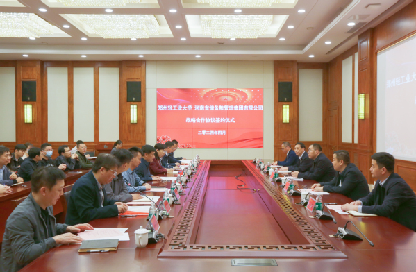 4月16日,学校与河南省储备粮管理集团有限公司战略合作协议签约仪式在科学校区双创中心第一会议室举行。河南省储备粮管理集团有限公司党委书记、董事长王玉田,副总经理张成与我校党委书记黄荣杰,副校长白艳红出席仪式。校企相关单位负责人参加仪式。