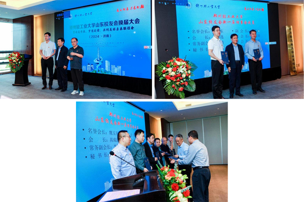 山东校友会上届会长魏玉东代表理事会做工作报告。与会校领导为上一届校友会会长、秘书长颁发优秀校友工作者奖杯,并为新一届理事会成员颁发聘书。新任会长高成选代表新一届校友理事会做表态发言,提出了新的工作理念和发展思路。