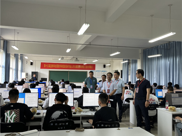 为推动新时代青年的高质量发展,培养青年科技人才,提升全球科技竞争力,近日,第十五届蓝桥杯全国软件和信息技术专业人才大赛全国总决赛(河南赛区)在我校成功举行。我校作为河南省唯一赛点,为来自全省的参赛选手提供了专业的比赛环境和周到的服务。周立明副校长现场指导竞赛工作,教务处、工程训练中心(创新创业学院)等部门负责人陪同指导。