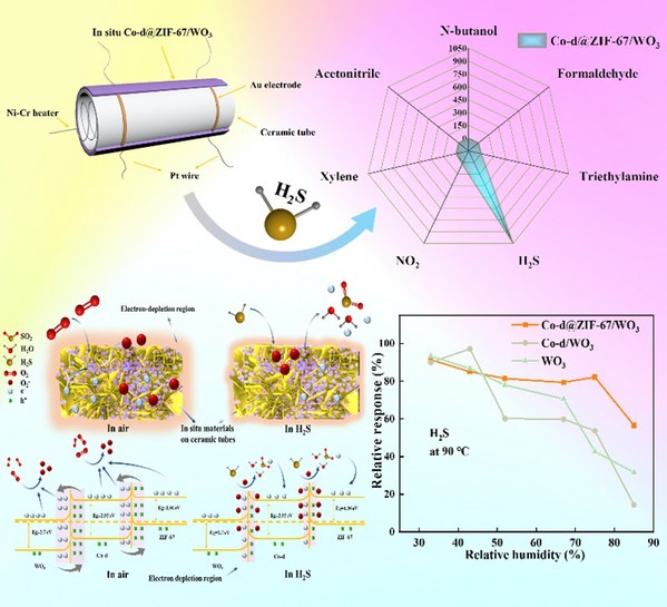 近日,材料与化学工程学院桂阳海教授课题组联合澳大利亚Griffith University在材料科学领域Top期刊《Advanced Science》上发表题名为“In-Situ Synthesis of Hierarchical Co(CO3)0.5(OH)·0.11H2O@ZIF-67/WO3 with High Humidity Immunity and Response to H2S Sensing”(《原位制备高抗湿和高灵敏的多级结构Co(CO3)0.5(OH)·0.11H2O@ZIF-67/WO3硫化氢传感器》)的高水平论文。