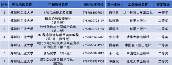 近日,河南省教育厅办公室发布了《关于公布河南省教材等级评定结果的通知》,评选出全省高等教育类优秀教材147项,我校推荐申报的《CAD/CAM技术及应用》等7部教材喜获高等教育类优秀教材奖。教材建设是国家事权,是学校开展人才培养、落实立德树人根本任务的重要抓手,学校历来高度重视教材建设工作。下一步,学校将进一步总结教材建设经验,不断完善教材建设机制,加大对教材建设的支持力度,打造更多体现轻大特色的优秀教材,为学校高质量发展蓄势赋能。