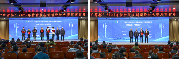 “矿源杯”2025年特种装备创新设计大赛河南省赛共评出研究生组省级一等奖2个、二等奖5个,三等奖5个;本专科生组省级一等奖6个、二等奖14个,三等奖22个。与会领导嘉宾为全体获奖选手颁发获奖证书和奖金。