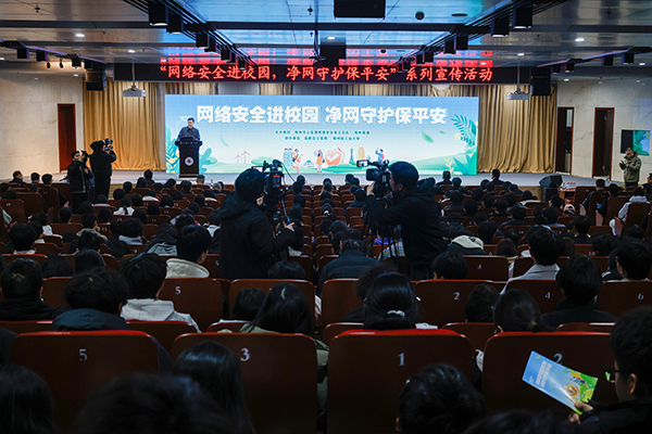 张成在致辞中指出,网络安全事关国家安全、校园稳定和师生切身利益。他向全校师生提出三点要求:一是强化教育引导,将网络安全知识、法律法规、防护技能送进课堂、融入日常;二是筑牢思想防线,引导师生明辨是非、抵御渗透,坚决抵制各类网络谣言和有害信息;三是深化多方合作,共同织密防范电信诈骗和网络犯罪的安全防护网。