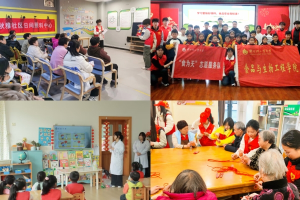 建筑环境工程学院在秋雅社区开展消防科普宣传,进行灭火器使用演示与安全知识讲解;电子信息学院在紫锦社区开展雷锋事迹宣讲与彩绘互动,让榜样力量浸润童心;食品与生物工程学院走进高新区万科城小学,开展食品安全科普宣讲,筑牢校园食品安全防线;体育学院走进嘉木苑社区开展健身指导,助力居民健康生活;艺术设计学院走进附属学校绘制创意黑板报,以艺术赋能教育;材料与化学工程学院走进郑州科技馆、幼儿园,开展科普讲解、趣味化学实验,点燃青少年科学梦想;烟草科学与工程学院前往养老院,为老人表演节目、教编中国结、暖心陪伴,用青春温情守护“夕阳红”。