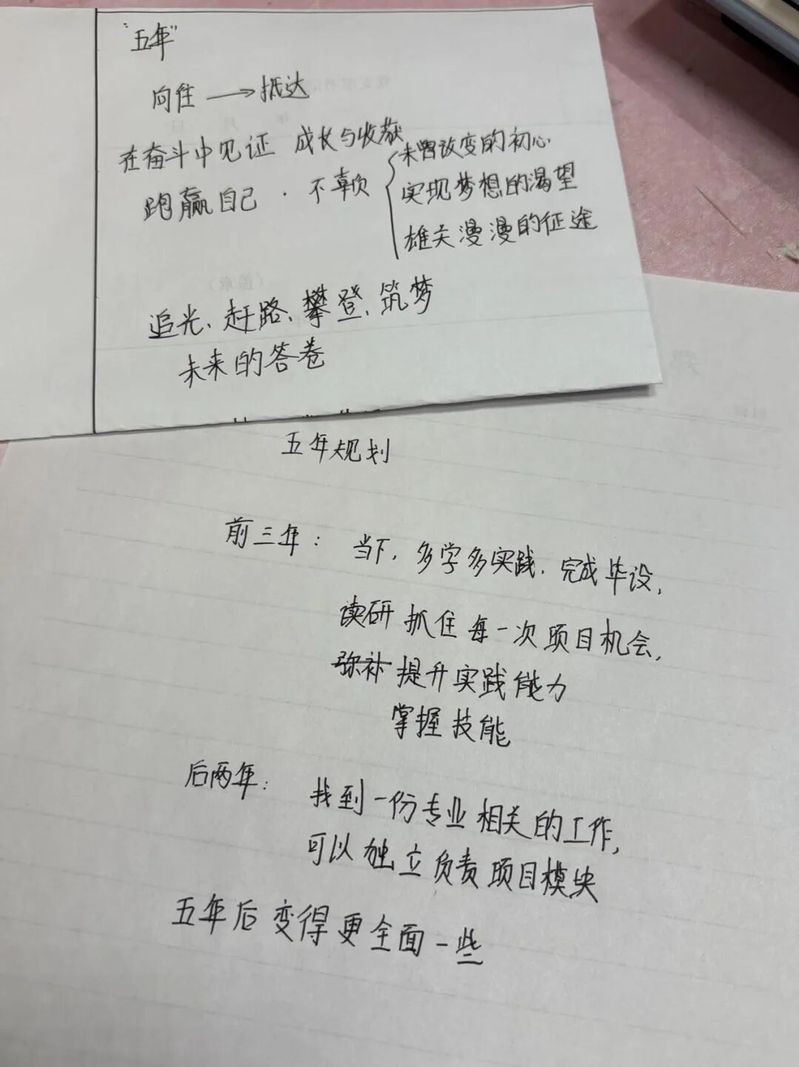 未来的五年,我期待看到自己在专业上慢慢扎根,在实践中不断成长。更期待五年后回望时,能对自己说:我没有辜负这个时代,也没有辜负努力的自己。